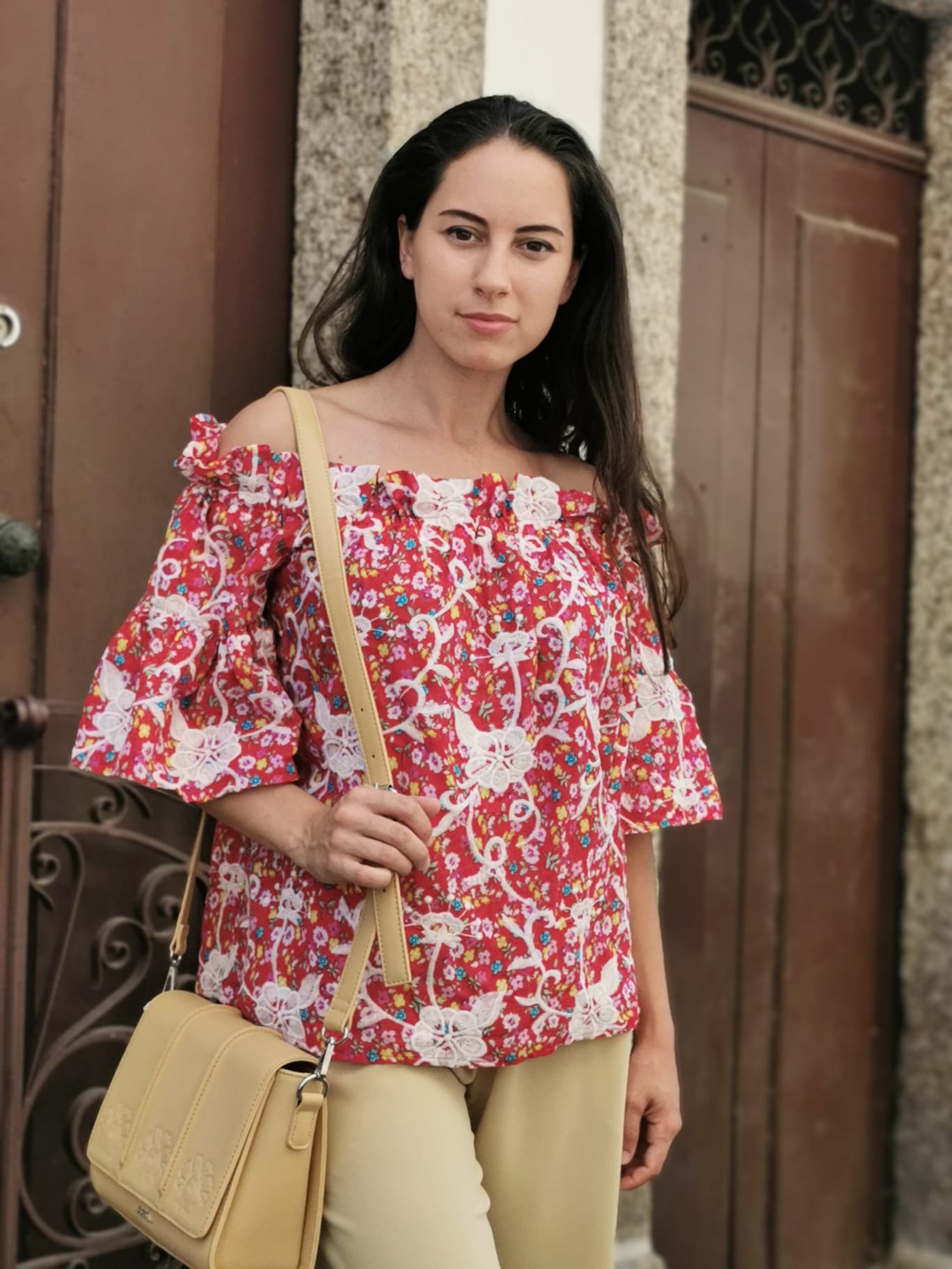 Calça de corte reto, bolsos metidos nas costuras laterais, fecho invisível na costura lateral esquerda.