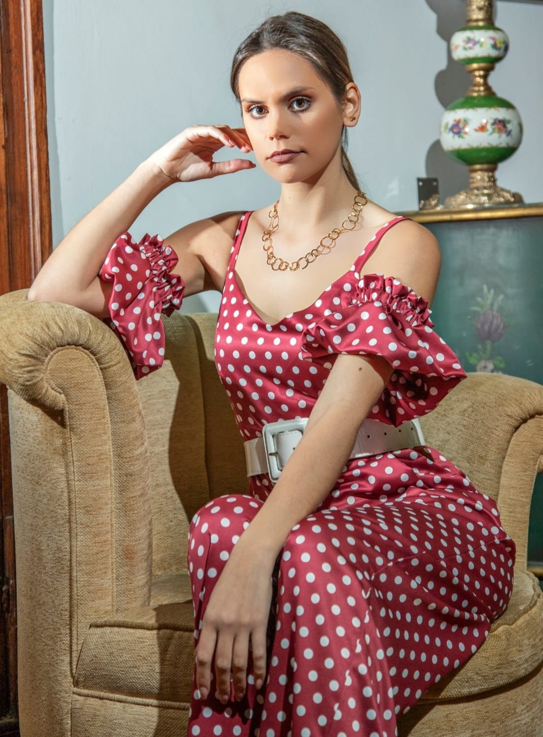 Macacão bordeaux com alsas, decote V, calça com Prega e bolsos, fecho invisível atrás