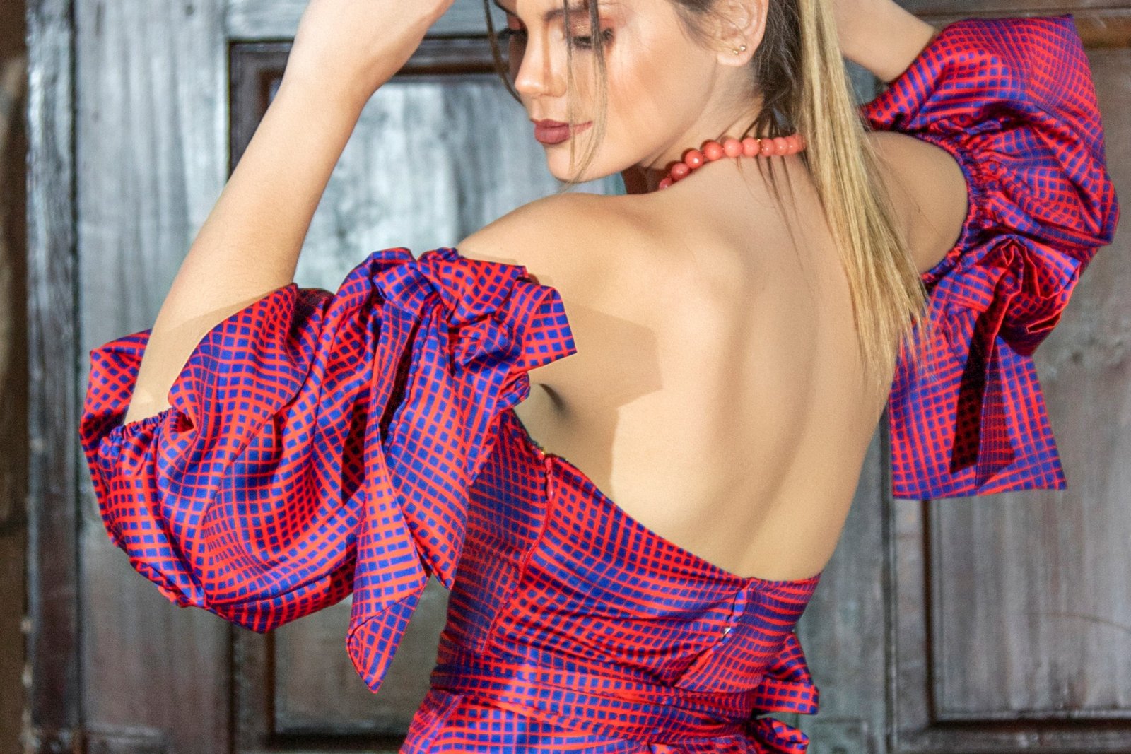 Vestido curto estampado vermelho/azul