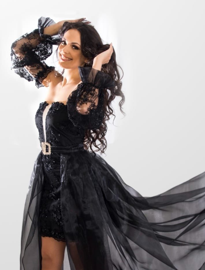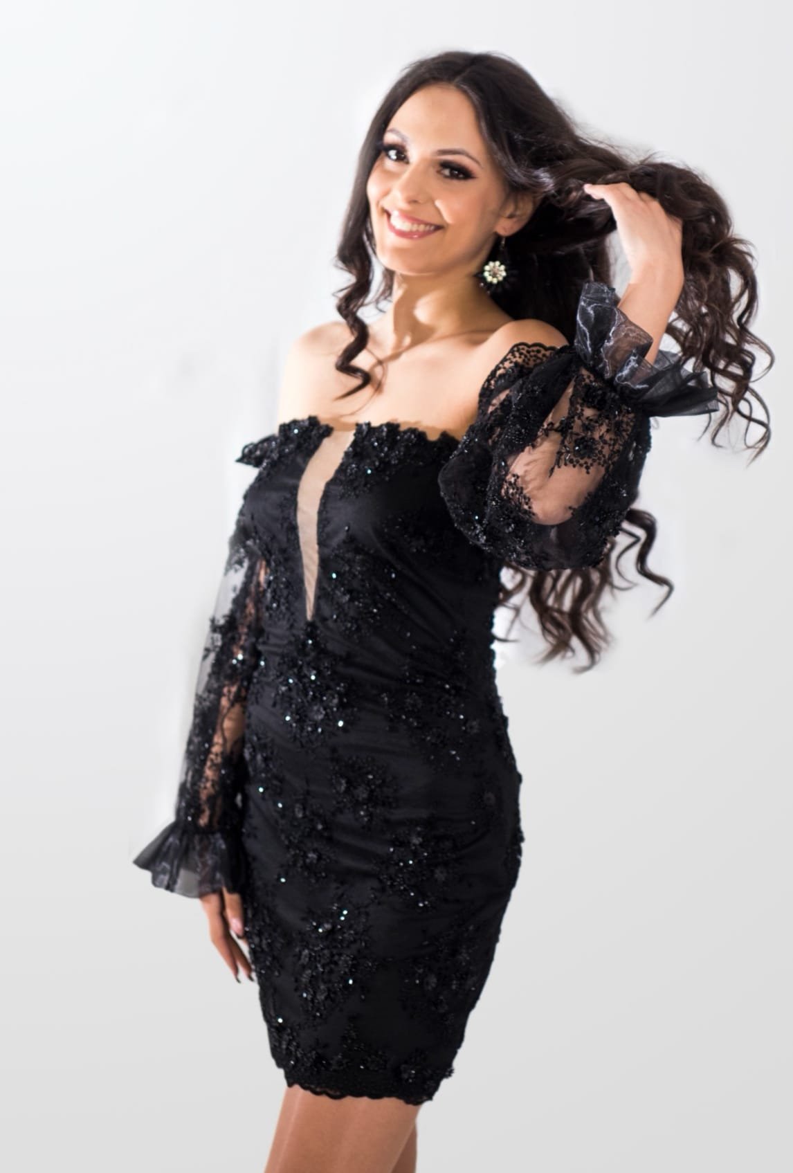 Vestido de festa em renda com pedraria com decote acentuado. Mangas e saias opcionais. Este vestido faz três looks diferentes.